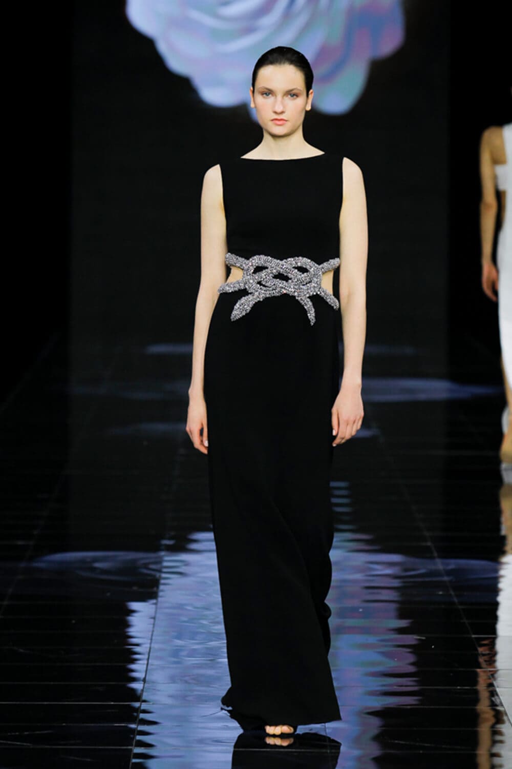 فستان أنيق على شكل حورية البحر مع فتحة رقبة واسعة وتصميم مفتوح على جانبي الخصر لإضفاء شكل منحني. يأتي باللون البرتقالي ومصمم بحزام ثعبان مطرز باللون البرونزي.