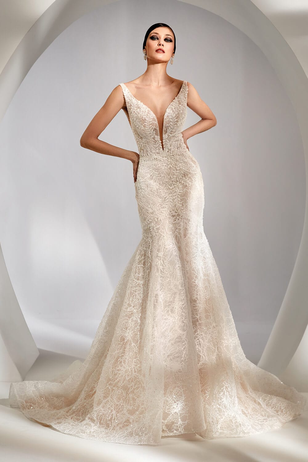 ياقة على شكل V مع صورة ظلية جذابة ، تُظهر شكلك وتبرز منحنياتك ، مما يمنحك شكل الساعة الرملية المثالي. تحتضن التنورة جسمك بإحكام ثم تبرز في منتصف الفخذين بأسلوب البوق وصولاً إلى الأرض. تسوّقي أستي من مجموعة نيكول كوتور للحصول على الغطلالة الراقية والنّاعمة!