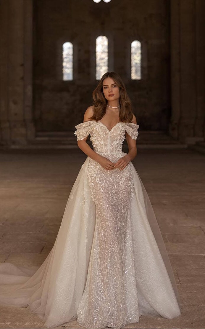 اظهري بأفضل ما لديك في هذا الفستان اللامع المذهل من إيفا ليندل. يقدم الفستان خط رقبة منفتحة على الكتف مع رقبة على شكل قلب ، محكم حول الخصر في مشد ضيق محدد. إنه يحتضن منحنياتك بأناقة ويعرض شكل الساعة الرملية ومزين بالكامل بتفاصيل لامعة ودانتيل. لإطلالة متعددة الاستخدامات ، تأتي مع تنورة متناسقة قابلة للفصل.