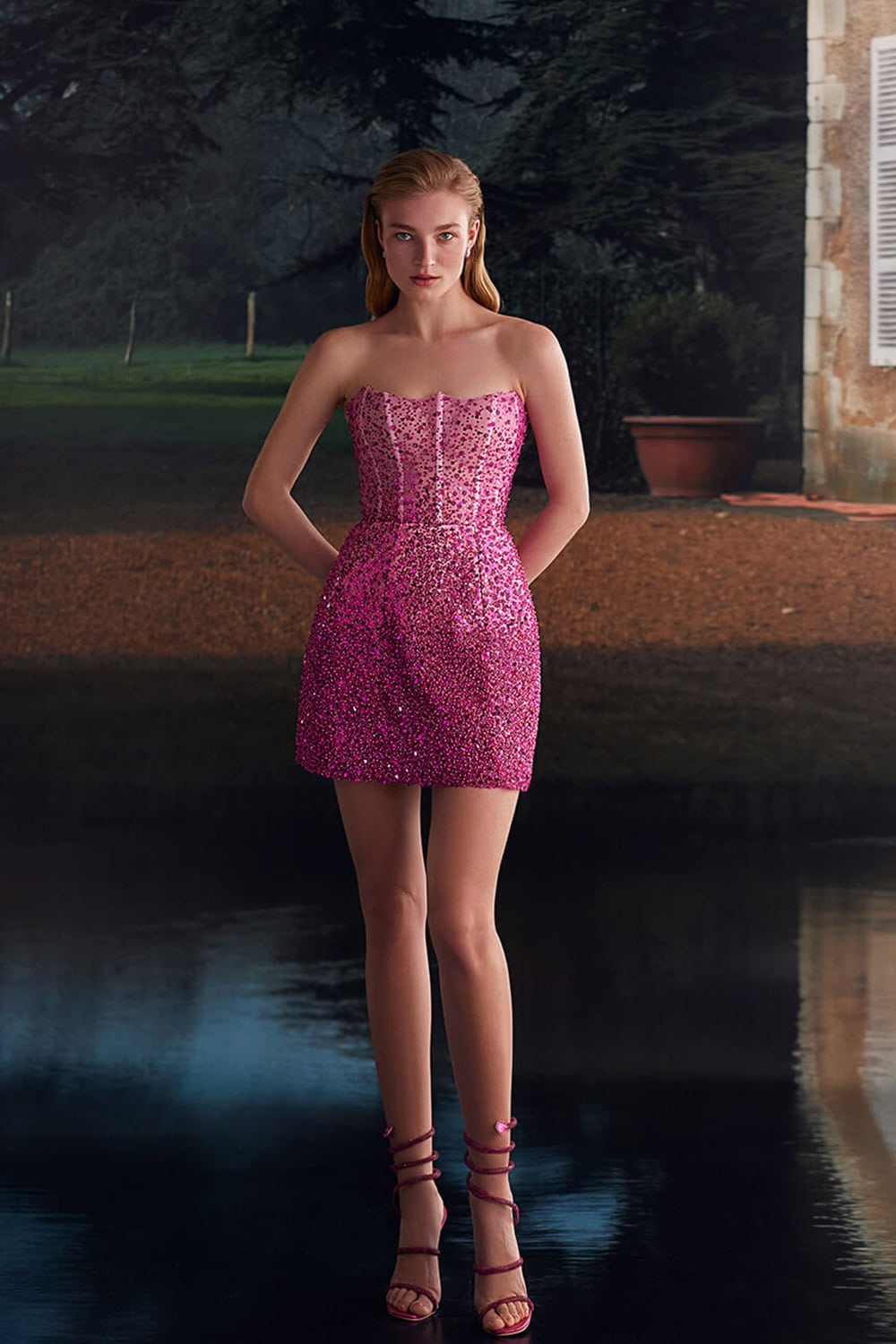 Shine in this exquisite corset-based mini dress, crafted from semi-translucent fabric and adorned with intricate sequin embroidery. The detailed design enhances your figure while adding a touch of glamour to your look. Perfect for parties or special events, this dress effortlessly combines elegance with a playful edge, ensuring you stand out in style.