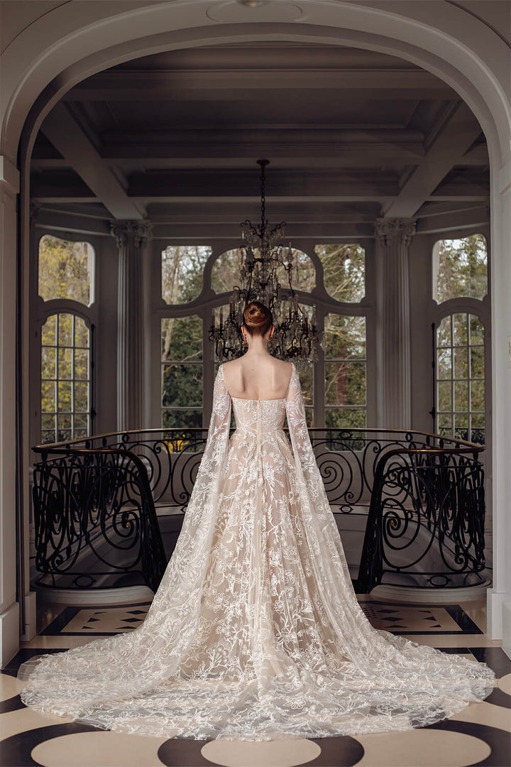 This dress blends timeless beauty with modern flair.
